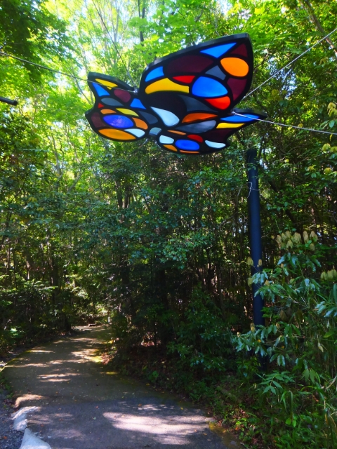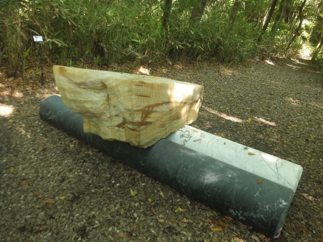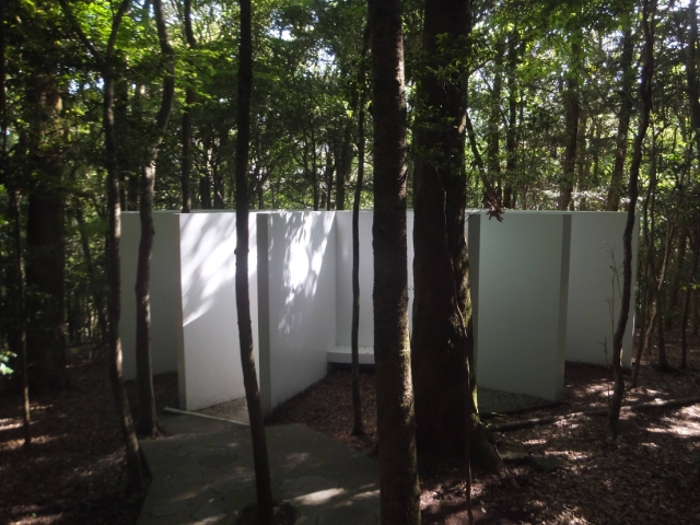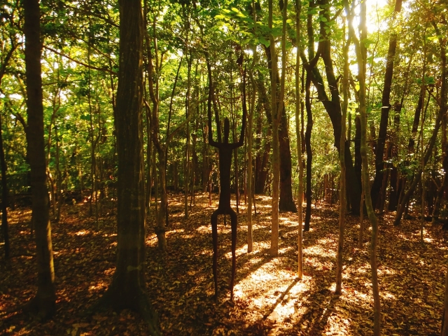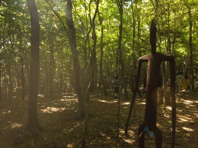 作品群は森の中へと続きます。木々の間に隠れるように配置された作品たちは、注意していないと見逃してしまうかもしれません。