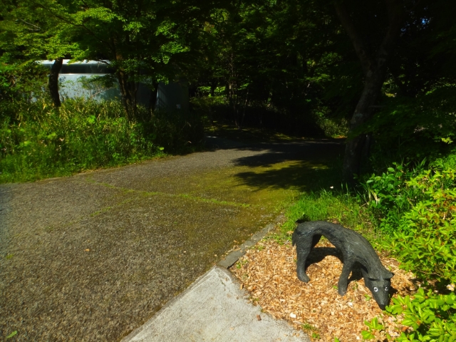 道の脇や森の中など、あちこちに出現するこの犬たち、園内に全部で8匹います。行く先々にいるので、まるでこの犬と一緒に巡っているような気分になってきました。