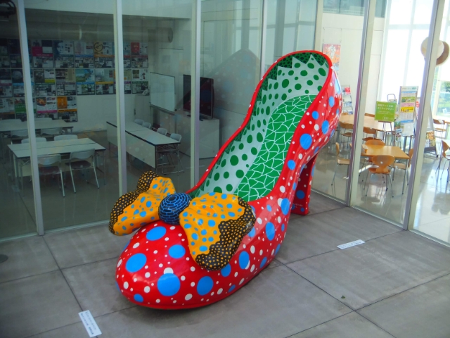 こちらも同じく草間彌生さんの《赤い靴》。カボチャの作品が有名ですが、このハイヒールも重要なモチーフとして多くの作品に登場します。