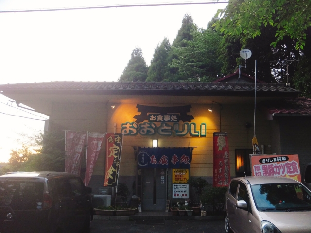 お腹が空いたので夕飯にしよう!しかし、霧島神宮付近のお店は閉まるのが早い。夕飯が食べられそうなところがまったく見当たりません。そんな中、見つけたのが「お食事処おおとりい」。22時まで営業という、とても利用しやすいお店です。