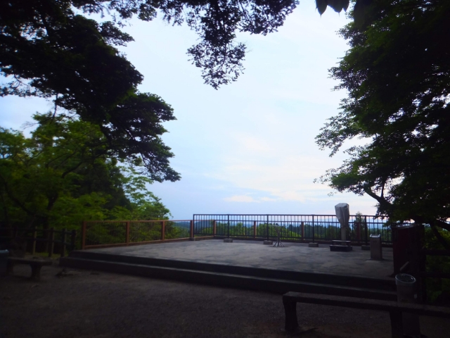現在地は見晴らしが抜群。三の鳥居から社殿と反対方向に進むと、展望台が設置されています。連なる山々に加え、天気が良いと桜島も見渡せるそうです。