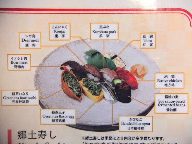 様々なメニューがある中で気になったのは「郷土寿司」。10巻のお寿司なのですが、ネタがとても珍しいんです!
