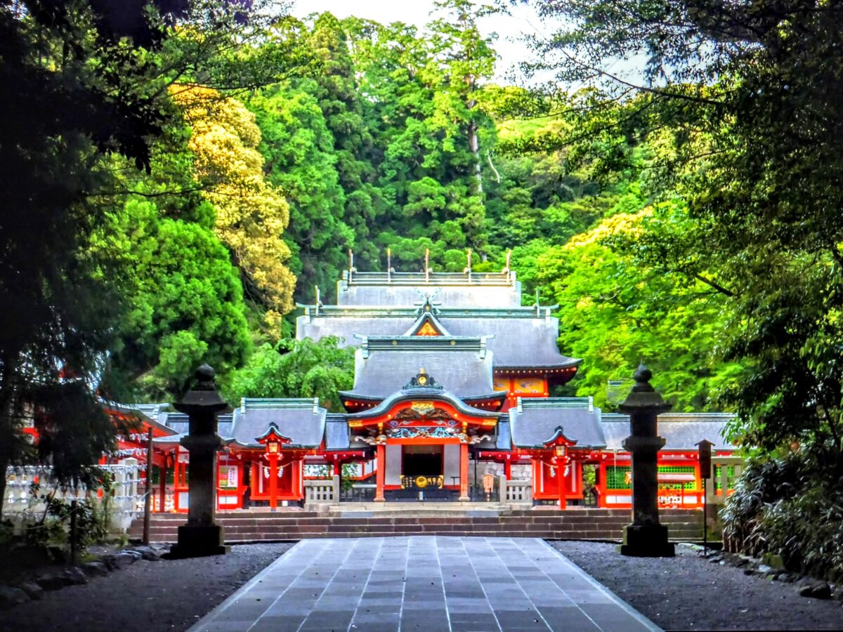木々のトンネルを抜けると、重厚な社殿が見えてきました。この社殿は、1715年に島津吉貴によって建てられたものです。