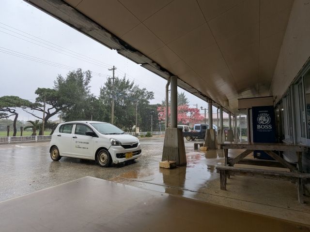 店先に屋根のあるコープで雨宿り。ここは島最大のスーパーで、食品や日用品、生活雑貨など様々なものを販売しています。店内ではなぜかオレンジレンジの「上海ハニー」がエンドレスでリピートされていました。