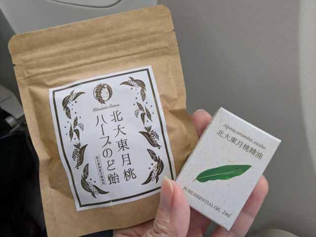 カフェにはお土産の販売もあります。「北大東月桃ハーブのど飴」と「北大東月桃精油」も買っちゃいました!