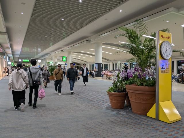 遅れて到着の那覇空港