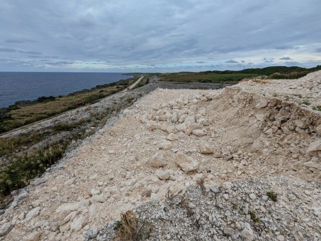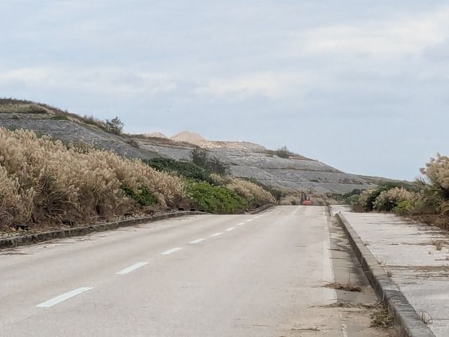 石積みといってもきれいに整形されており、その姿はまるで巨大な古墳。いったい何のために造ったのか気になるところですが、どうやらこのピラミッドは、例の漁港を造った際に出た岩石を積んで造り上げたそう。