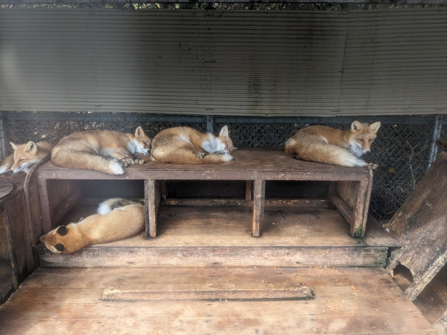 こちらは春に生まれた小ぎつねたち。生後半年も経っていないのに、もう立派な姿です。秋には親離れしてしまうそうです。