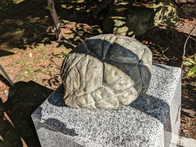 こちらの不思議なカタチの石は亀甲石。吉兆長寿の御利益があるそうです。