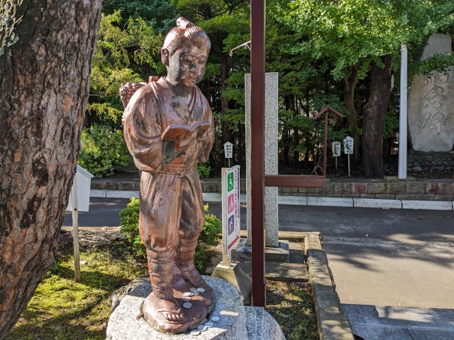 二宮金次郎の像も置かれています。かつては全国の小学校に置かれていたという銅像、きっと令和の時代だったら「子供に労働させるな」とか「歩きながら本を読むのは危険だ」といった内容で炎上してしまいそうです。