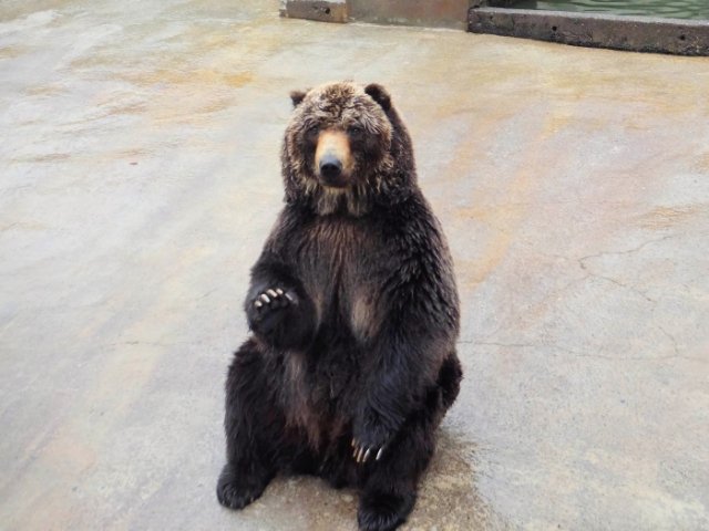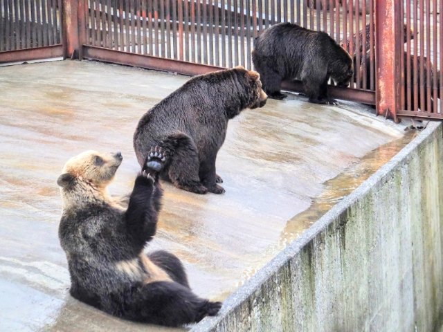 ヒグマが数頭飼育されている、小さな無料動物園。エサをもって近づくと、ヒグマたちは様々な特技を披露してアピールをはじめます。ヒグマは恐ろしい動物・・・そう考えていたのですが、ここにきて印象がガラリと変わってしまいました。