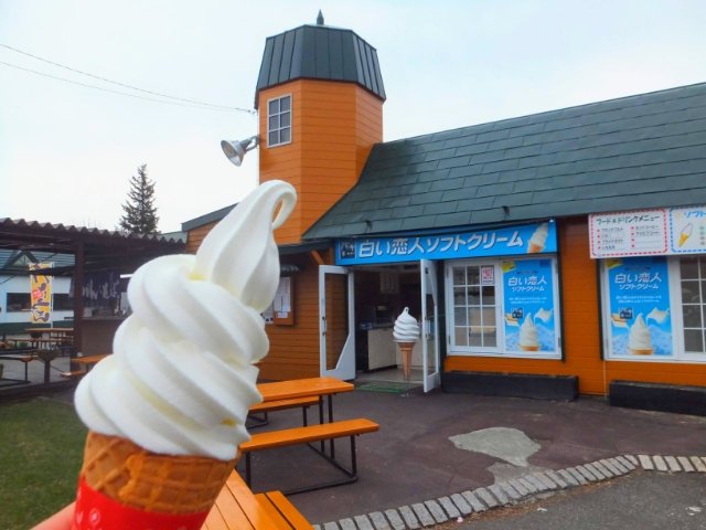 近くの売店では白い恋人ソフトクリームも売っています。ふんわりと白恋が香る美味しいソフトクリーム。写真はバニラ味ですが、チョコ味やチョコバニラミックスもありました。