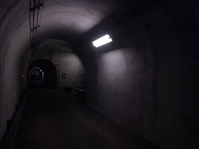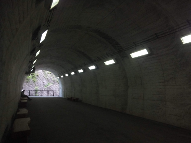 薄暗いトンネルは全長750m。暑い中での訪問でしたが、内部はひんやりしてます。