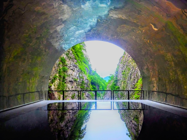 こちらの清津峡、他の渓谷とは全く違います。なんと、トンネルから見るタイプの渓谷なのです。