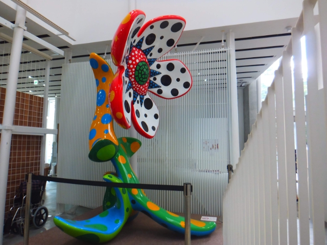 1階は無料なので、展示されている作品は観覧自由。写真撮影も可能でした。展示作品は現代アートがメイン。ドットかぼちゃで有名な草間彌生さんの作品も展示しています。