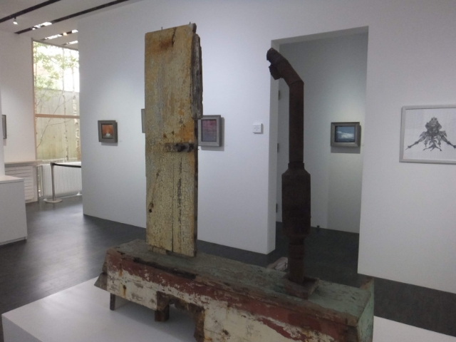 無造作に置かれた大竹伸郎さんの『朽ちた木箱の上の頭部とチューブ』。煙突のようなパイプと木の板。どっちが「頭部」でどっちが「チューブ」でしょうか?木の板のてっぺんをよく見ると、突き出たネジが。わかった!ネジ「頭」だ!