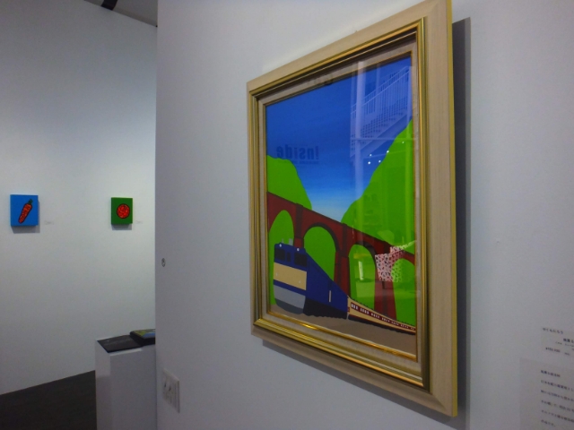 やくもたろうさんの『風薫る碓氷峠』。「描き鉄」とも呼ばれる、鉄道を多く描いている画家。爽やかでポップな画風で、めがね橋こと碓氷峠第三橋梁が描かれてます。