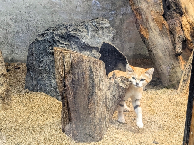 多数の動物の中でも人気の高いのはスナネコ。砂漠に棲息しており、砂漠の天使とも呼ばれるいきものです。飼育している動物園は少なく、2023年7月時点では、「那須どうぶつ王国」、「長崎バイオパーク」、「ネオパークオキナワ」、「埼玉県こども動物自然公園」と5ヶ所のみ。