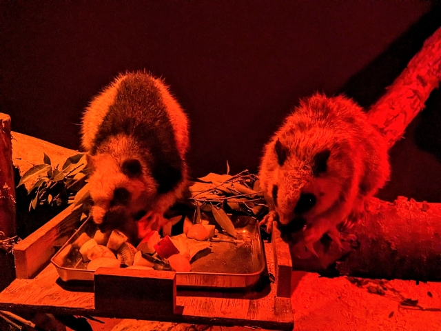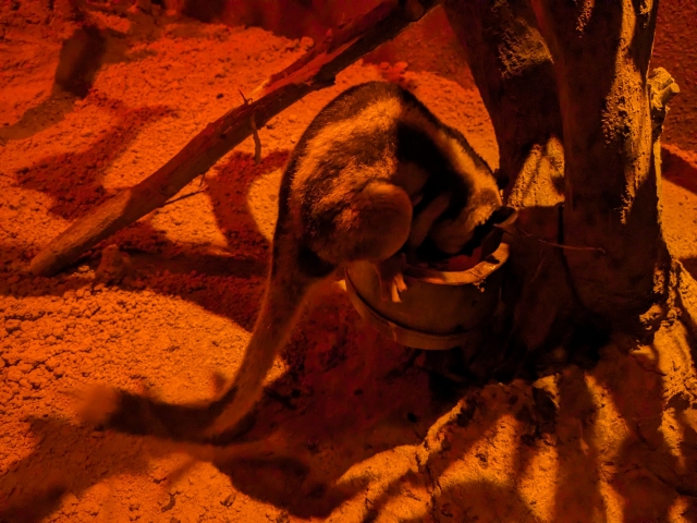 他にも、とことこ歩き回るマタコミツユビアルマジロや、かわいらしい姿のショウガラゴなど、様々な夜行性生物がたくさん。赤いライトがあるため、肉眼ではしっかり見ることができますが、写真はかなり撮りづらいです!もちろんフラッシュはNGですのでご注意くださいね。