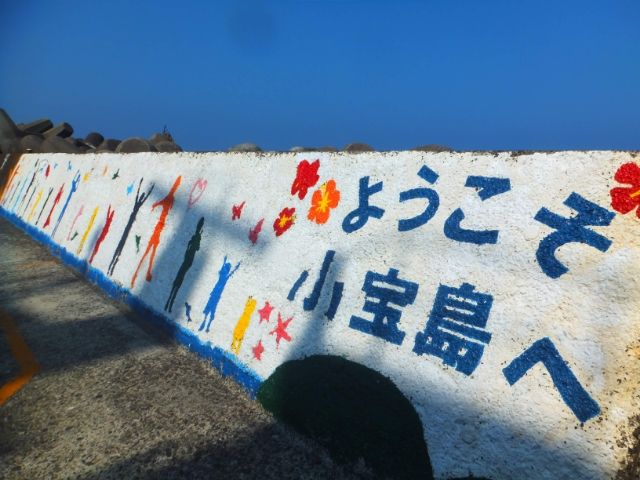 8:20、小宝島に到着。おなじみのウェルカムアート。色使いが華やかでかわいらしい雰囲気です。