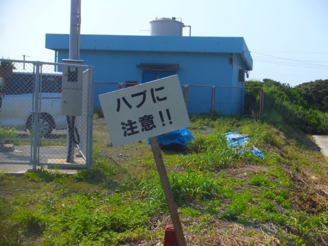 唐突にあらわれる「ハブに注意」の看板。Wikipediaによると、この小宝島は国内のハブ類生息最北端にあたるそう。そういえば、昨日までの島に比べて、生物の種類が少し変わったような印象があります。(詳しくは次の宝島の記事にて)