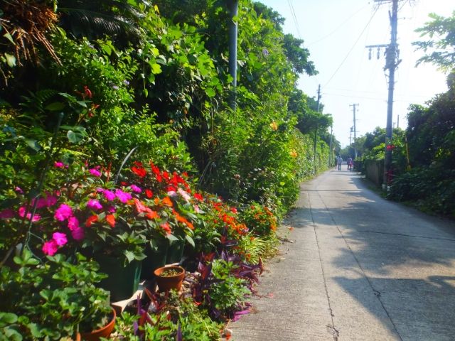 ハイビスカスが咲く道を歩きます。道が平坦というだけで、なんて快適なのでしょうか。