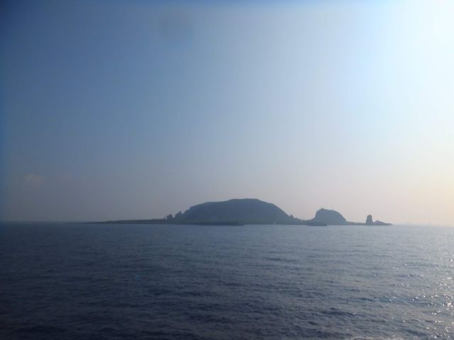 小宝島が見えてきた。妊婦さんが横たわっているような外観で、「子宝」に恵まれるといわれている島です。