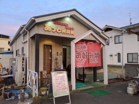 ジーンズストリートの近くにはたこ塩焼きそばを扱うお店が複数あります。今回利用したのはお好み焼きあっちゃんというお店。