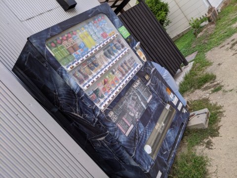 よく見ると自販機もブルーのジーンズ柄をまとっています。さすがにラインナップはノーマルなサントリー製品でした。
