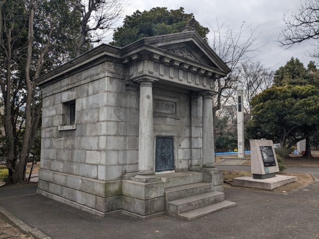 同じく北庭にある神殿のような古典的建築。こちらは、日本水準原点標庫と呼ばれるもの。