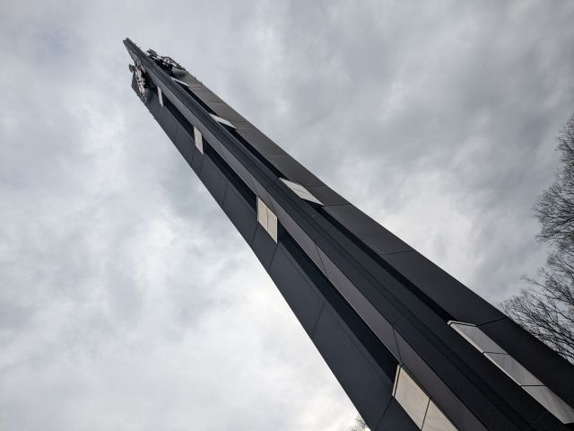 その高さは31.5m。努力の上にさらに努力を重ねて向上するという意味のことわざ「百尺竿頭一歩を進む」の百尺30.3mを超えるという意味が込められているそう。