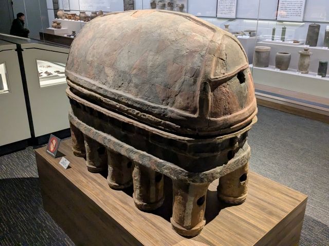 足のついた不思議な埴輪、こちらは山梨県笛吹市の井之上古墳より出土した陶棺。文字通り陶製の棺で、横幅40cm・縦幅150cmほど。人が入るには小さく感じますが、小柄な人物を納めていたのか、もしくは屈葬のように手足を折り曲げていたのかもしれません。