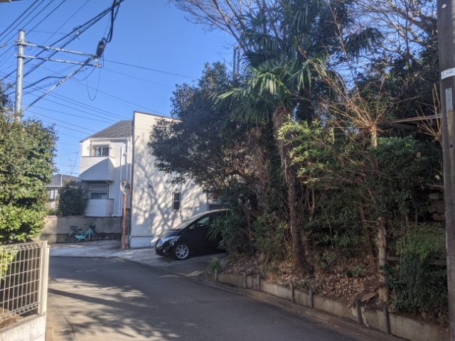住宅街の中を歩いていきます。マップは草木が生い茂るこの林を指しています。