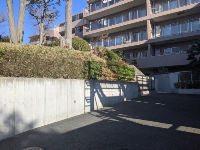 マンションの駐車場側には扉がありますが、カギはかかっていないため、墳丘上に登ることもできます。(↓写真の右奥)