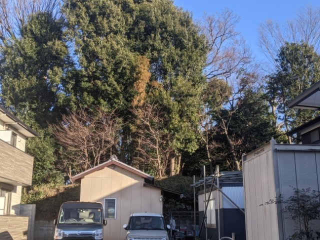 調べてみたところ、予想通り「民家古墳」でした。私有地内にあるため、道路からちらりと眺めることしかできません。塀が高いためほとんど見えませんが、凄く立派な気配なのでちょっと残念です。