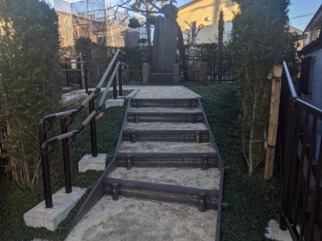 もともとは帆立貝式前方後円墳で、その全長は40m、後円部の直径は31mにも及んでいたそう。土地開発などによって削られてしまい、現在はほんのわずかしか残されていません。それでも、立派な石碑が立てられている点は、狛江古墳群の他の古墳に比べると風格を感じさせます。(ちなみに、石碑の文字は徳富蘇峰によるものらしいです。)