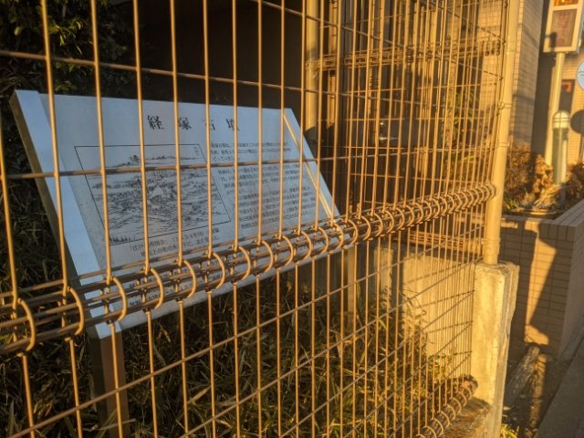 案内板はかろうじて道路からも見ることができます。こちらの古墳も直径40mという大型の円墳であったそう。「経塚」という名が示す通り、かつて経典が埋められていたという伝承もあるそうです。
