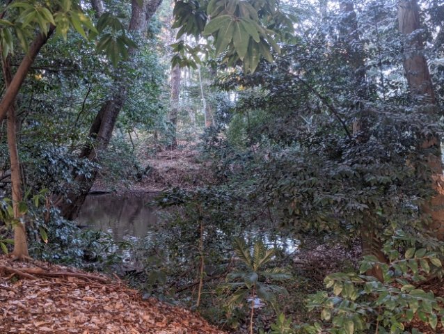 1〜3号墳と3基あるそうですが、詳細わからず。柵の外からは、自然が豊かな内部を見渡すことができます。生い茂る木々に包まれたひょうたん池では、水鳥たちがすいすいと泳いでいました。