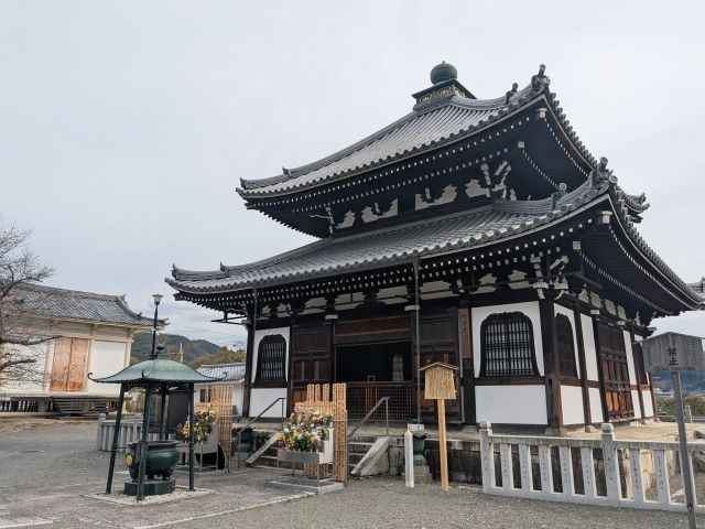 阿弥陀堂は、慶長10年(1605年)に豊臣秀頼により再建されたもので、阿弥陀如来像が安置されています。この像は腹中に彫刻で使われたノミが納められていることから、「おとめの如来」「ノミおさめ如来」とも称されているそう。