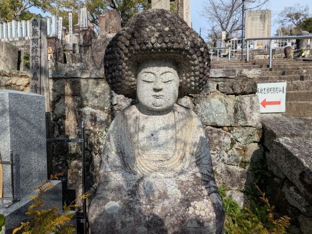 三重塔に登る石段の左に静かに佇む像。こちらは五劫思惟阿弥陀如来石像。
