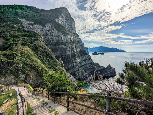 甑島の見どころといえば、真っ先に浮かぶのが断崖絶壁や奇岩といった地形。島の西側を中心にダイナミックな光景を見ることができます。上甑島より乗船できる「観光船かのこ」は、そんな迫力の地形を海上から見ることができる島を代表する人気のアトラクションです。