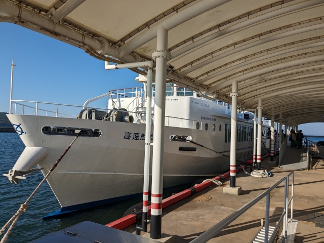 高速船の始発で行って終発で帰る、島での滞在時間が一番長くなるパターンを選択。個人的に、島へ行く際は船内で自由に過ごせるフェリーの方が好きなのですが、滞在時間を優先したため往復高速船になりました。