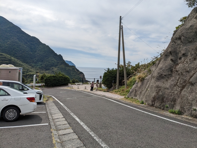 見ることができるポイントは複数ありますが、ポピュラーなのは前の平展望所。瀬々野浦集落の入口となる高台にあり、5台ほどの駐車スペースと島では貴重なトイレもあります。