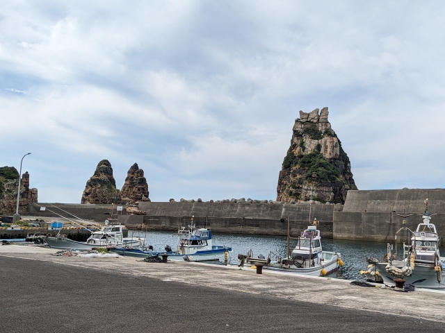 漁港を進んでいくと、先程の奇岩の一つが見えてきました。