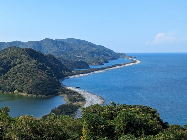 そんなちょっと特殊な地形である長目の浜。その美しさを堪能するには、高い位置から見渡すのがおすすめ。いくつかある展望スポットのうち、今回は3ヶ所をめぐってみました。