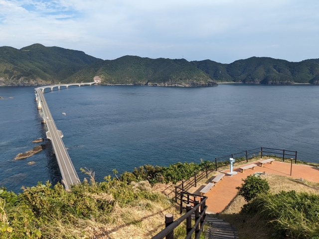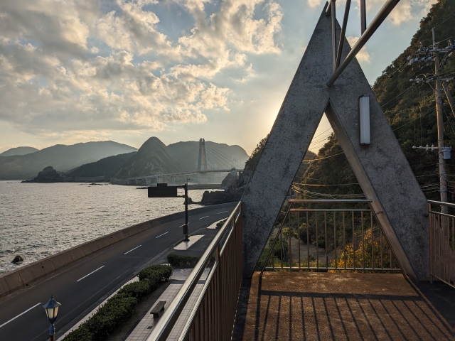 途中のスペースからは、甑大橋を別の角度から見ることができます。ここからの方が海を渡る感じが伝わりやすい気がしますね。
