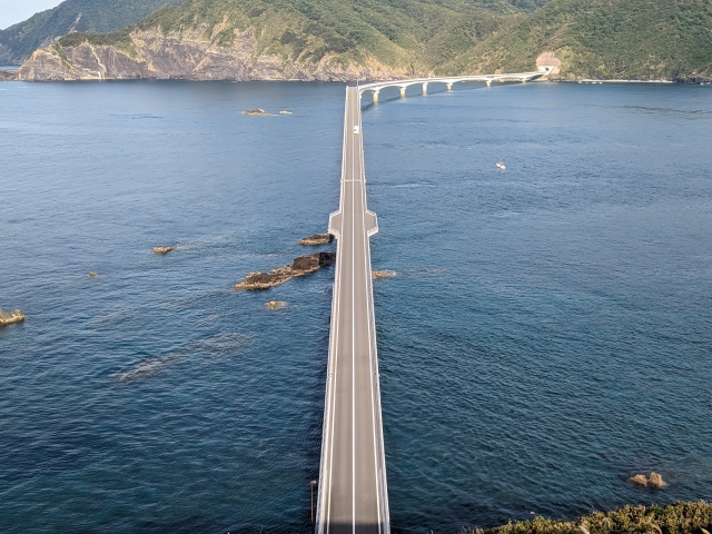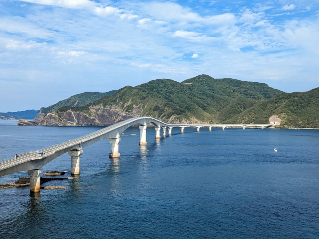 3つの橋で最も新しいのが中甑島と下甑島に架かる甑大橋。2020年完成であり、その全長1,533mともっとも大きい橋。