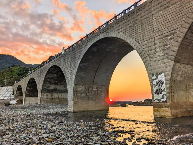 また、ちょうどよくサンセットタイム!赤く染まる空をバックに立つ橋はとっても絵になります。