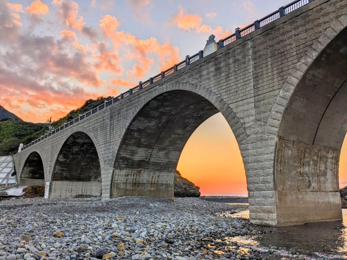 また、ちょうどよくサンセットタイム!赤く染まる空をバックに立つ橋はとっても絵になります。