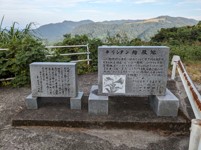 釣掛崎灯台からすぐ近くにあるキリシタン殉教地。手打青瀬地区で信仰を続けていたキリシタンが捕らえられ、命を落とした場所です。